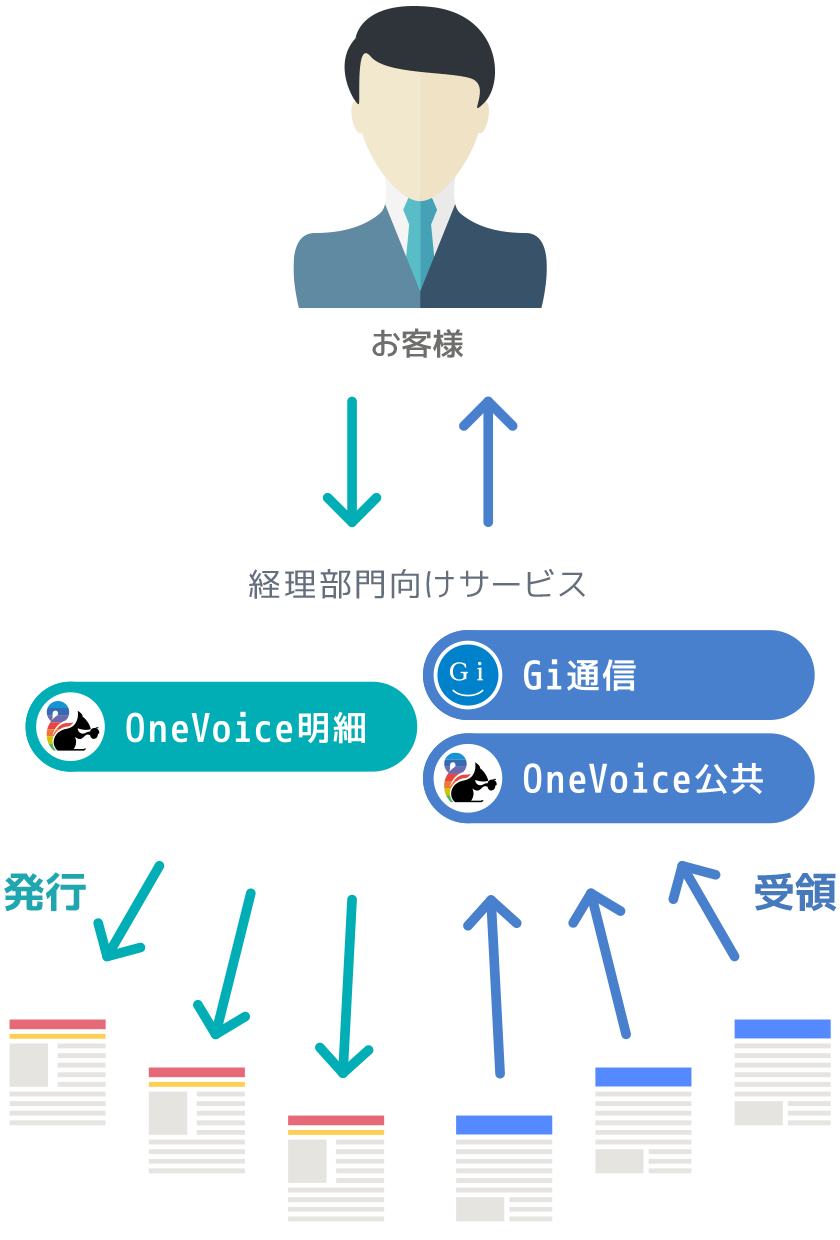 電話やインターネットなどの通信料金、電気・ガス・水道の公共料金の請求書を一括に取りまとめるサービス、取引先への帳票や請求書を電子化するサービスを通じて業務のペーパレス化と効率化を実現します。